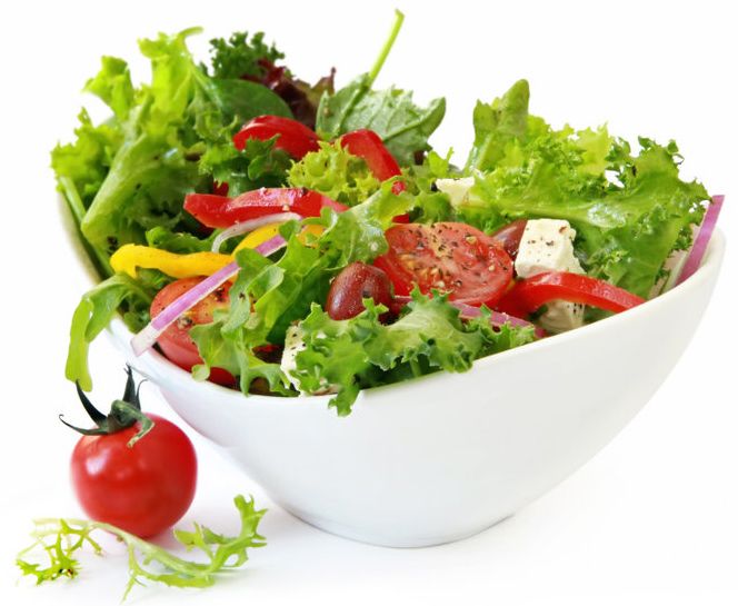 Grüne Blattsalat-Mischung, Tomaten, Gurken, Schinken,