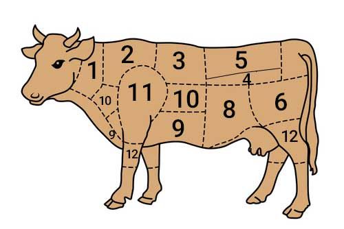Alle Teilstücke des Bugs lassen sich gut braten und schmoren. Der dicke Bug eignet sich für Braten,